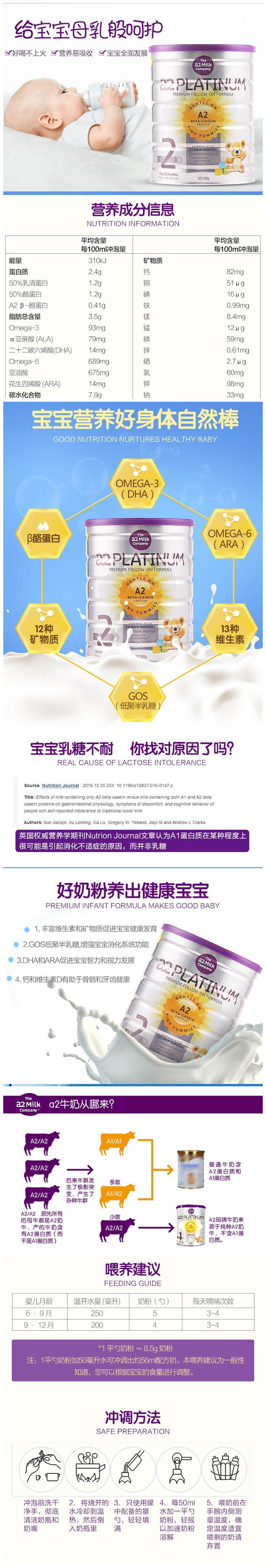 A2婴幼儿配方奶粉2段 900克