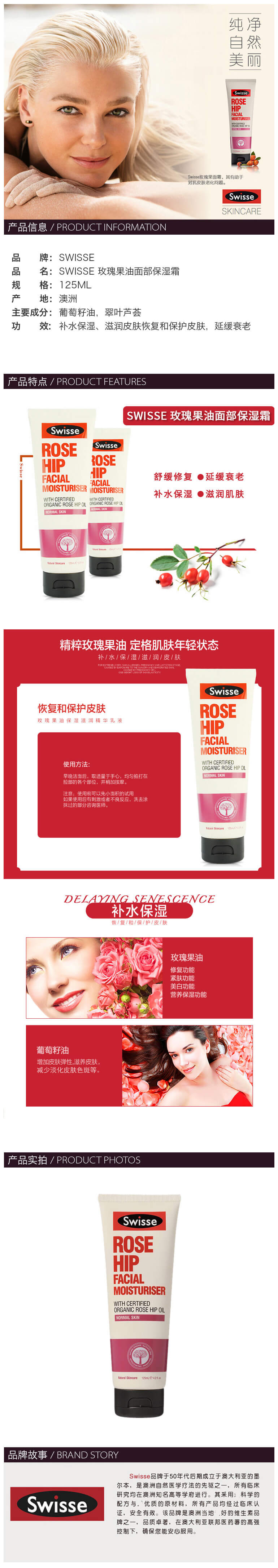 Swisse 玫瑰果油面霜乳液(改善暗淡皮肤防老化)125ml