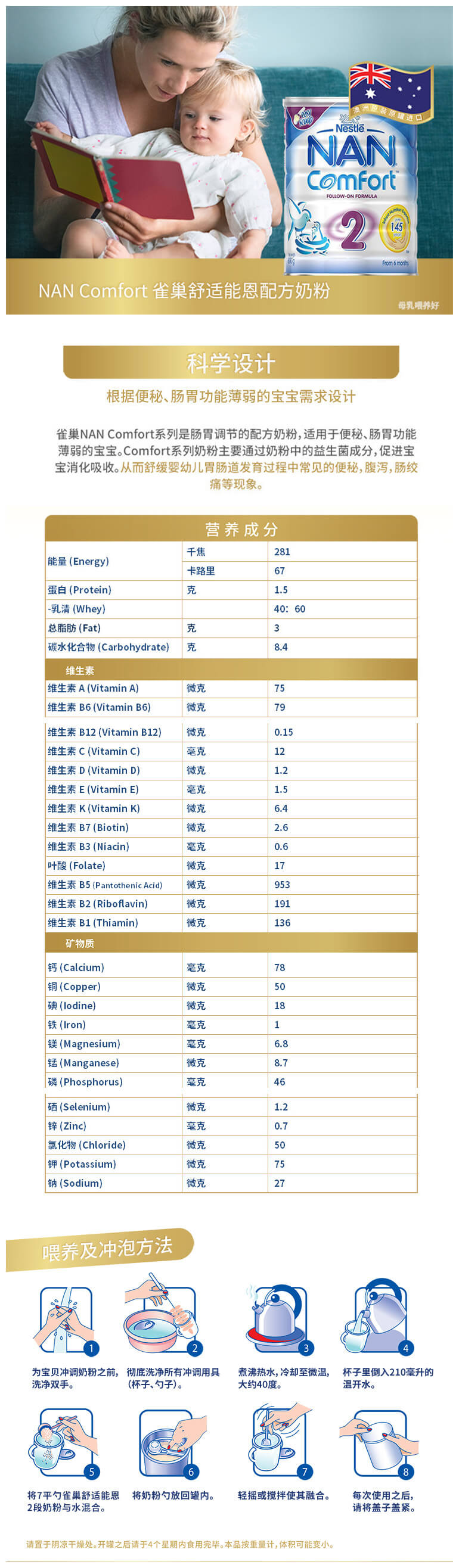 当前位置: 首页 > 母婴用品 > 雀巢NAN能恩 舒适版 益生菌 配方奶 2段