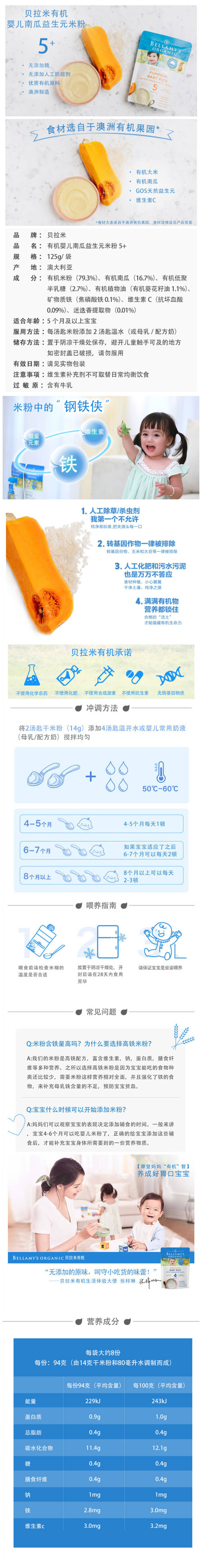 Bellamy 贝拉米有机南瓜米粉5+ 125gX3袋
