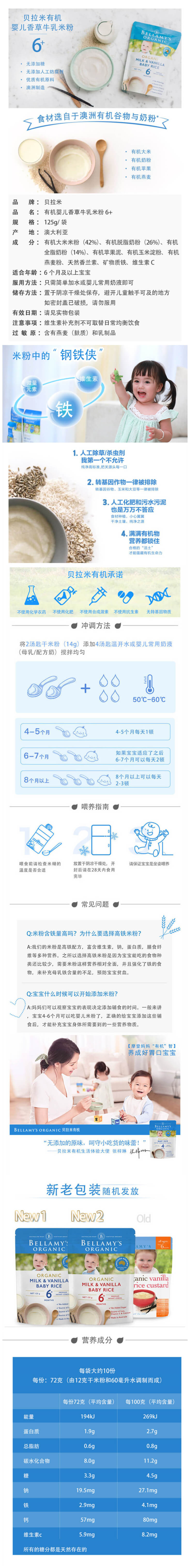 Bellamy 贝拉米有机香草米粉6+ 125g X3袋