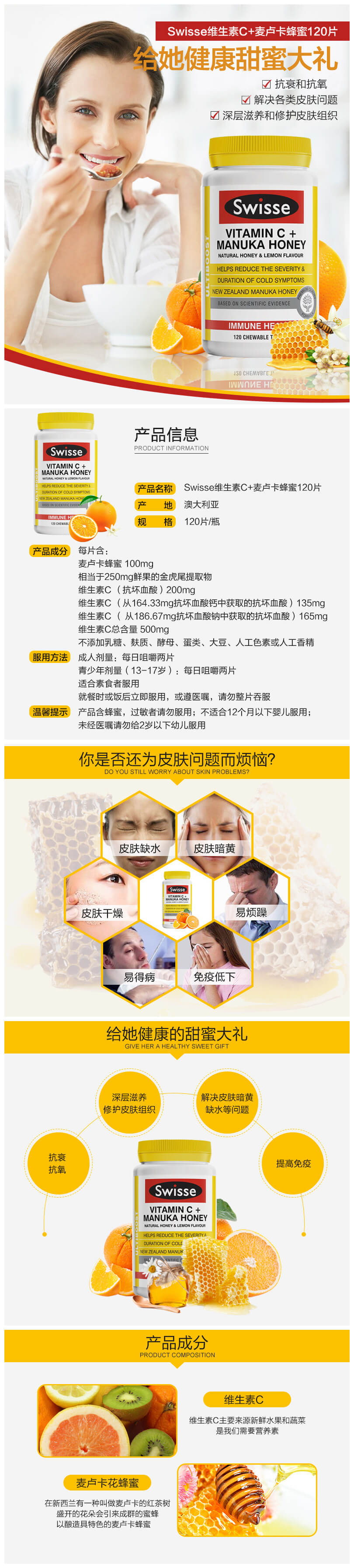 Swisse 麦卢卡蜂蜜维C咀嚼片 120片