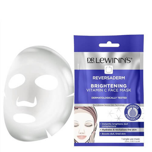 Reversaderm Brightening Vitamin C Face Mask is a luxurious mask using Bio-Cellulose technology, which allows the mask to adhere perfectly to the face acting like a second skin for an instant and continuous moisture surge. Loaded with a highly potent serum of Vitamin C and B3 to instantly hydrate, revitalise and brighten dull skin. Lime Pearl and Nutgrass promote gentle exfoliation and even skin tone for a radiant, glowing and more youthful looking complexion.
