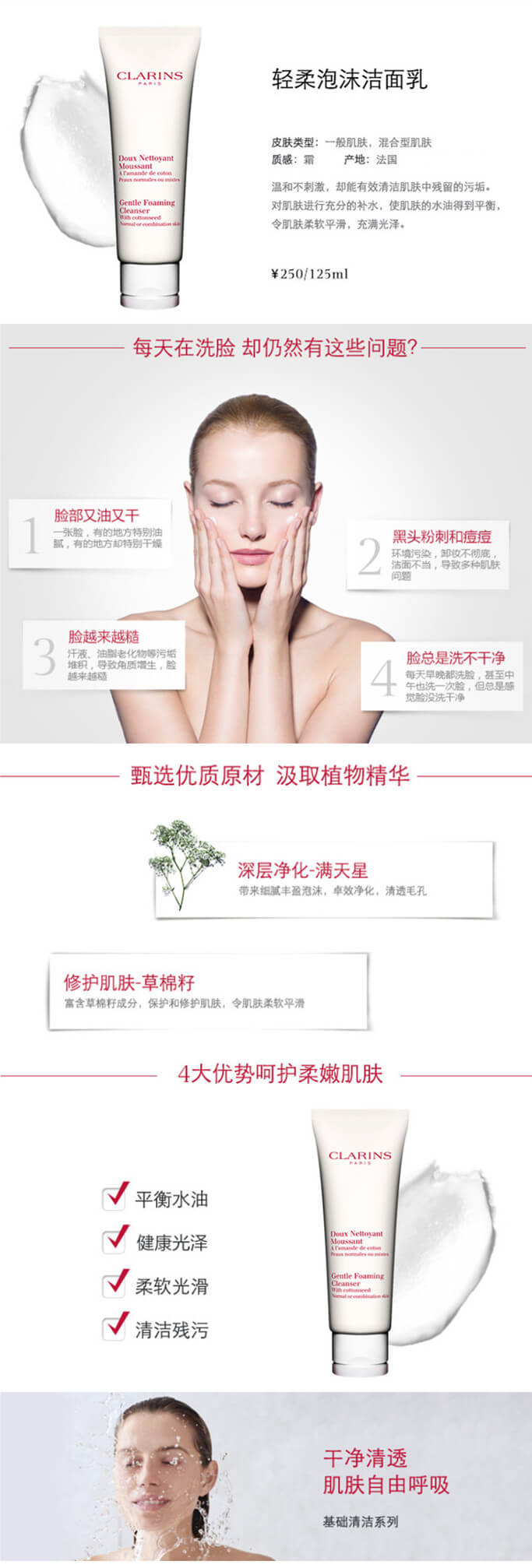 Clarins 娇韵诗 温和棉花籽洗面乳 50g