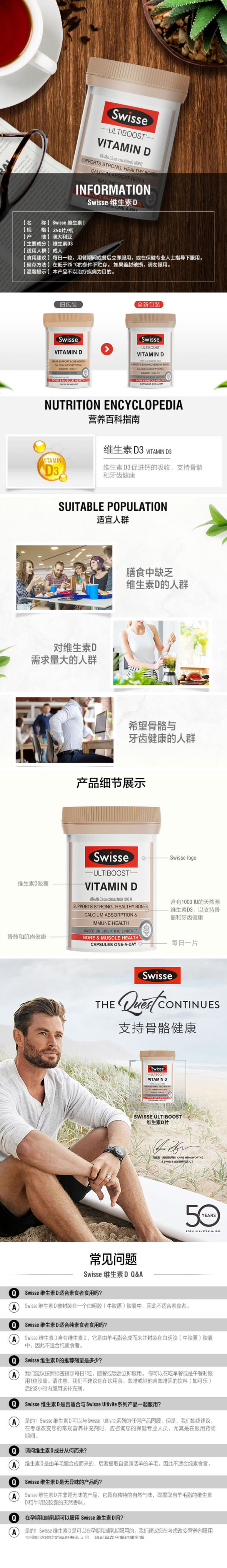 Swiss 增强吸收 活性补钙维生素D3 250片